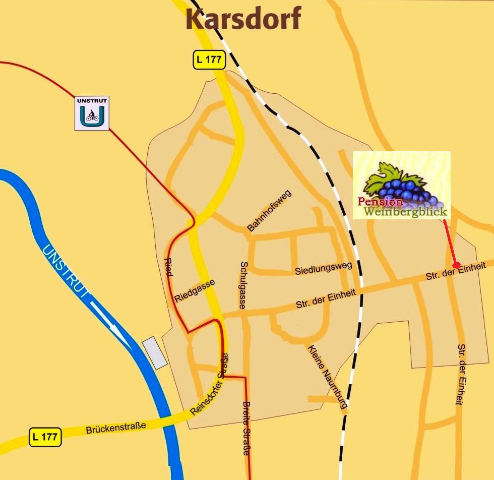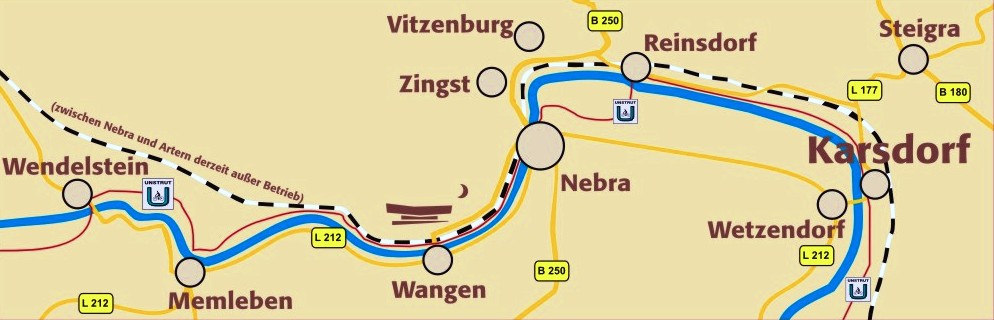 Von (A9) Abfahrt Naumburg in Richtung Freyburg/Eisleben fahren. Dann in Freyburg weiter in Richtung Querfurt (B180) fahren. Bis Abfahrt Karsdorf.